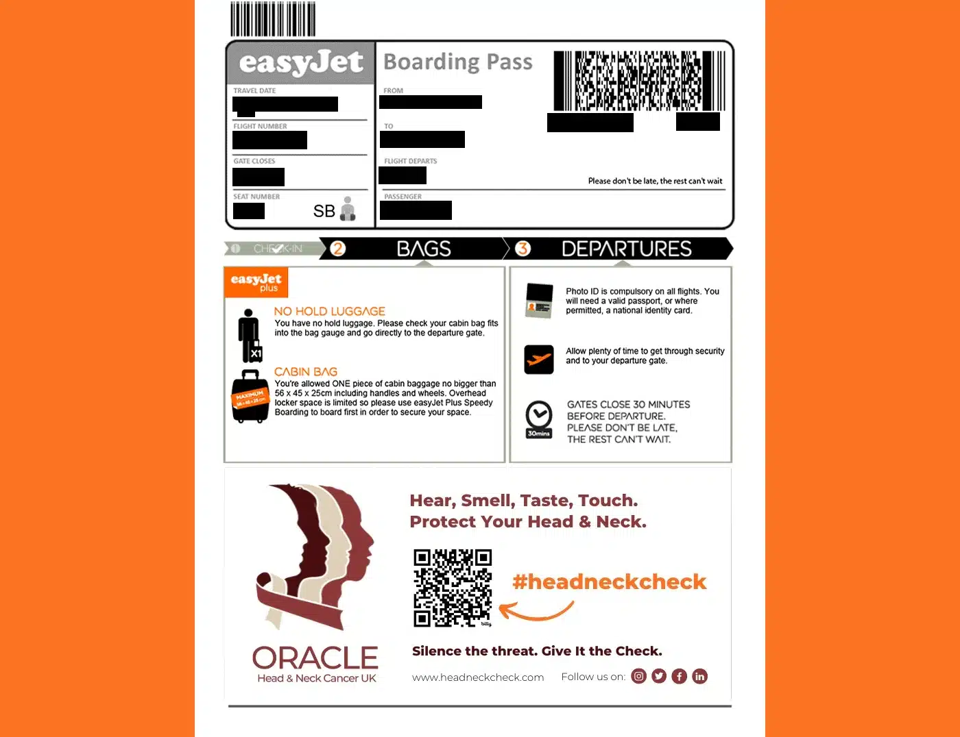 EasyJet Boarding Pass – Check in and check out information on head & neck cancers.