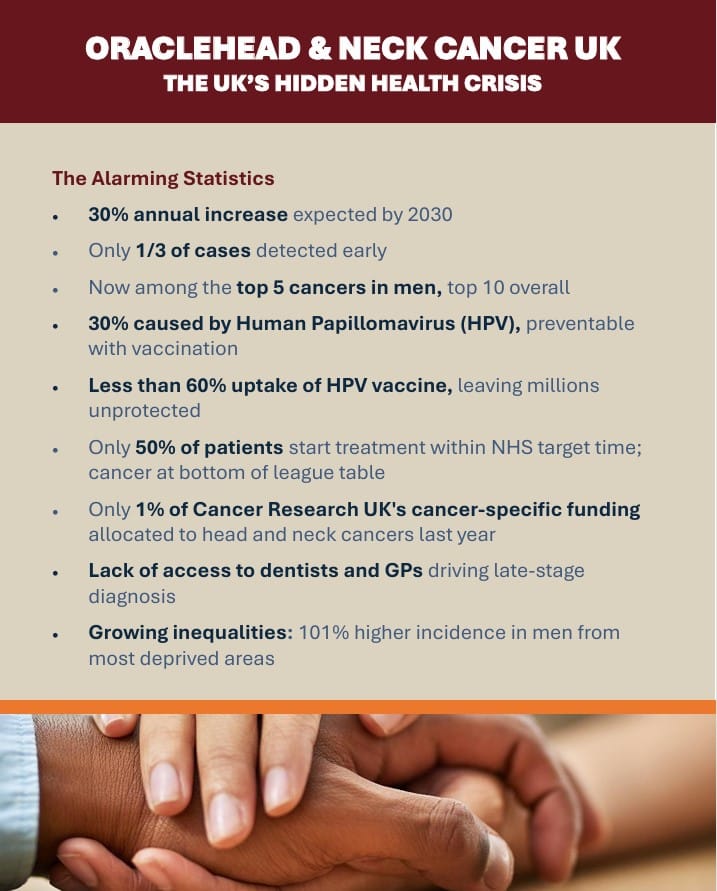 This leaflet lays out the statistics and facts underpinning the need for change and the worrying shortfalls in UK healthcare. Head and neck cancer has become a pressing health concern in the UK, yet it remains largely unknown.