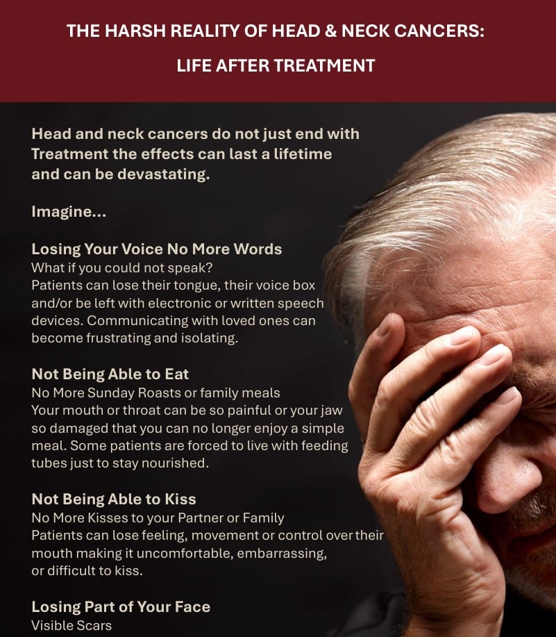 This leaflet lays out the harsh reality of head and neck cancer impacting patients in the UK. It describes the various changes in lifestyles and quality of life for the survivors and people living with the disease or in remission.